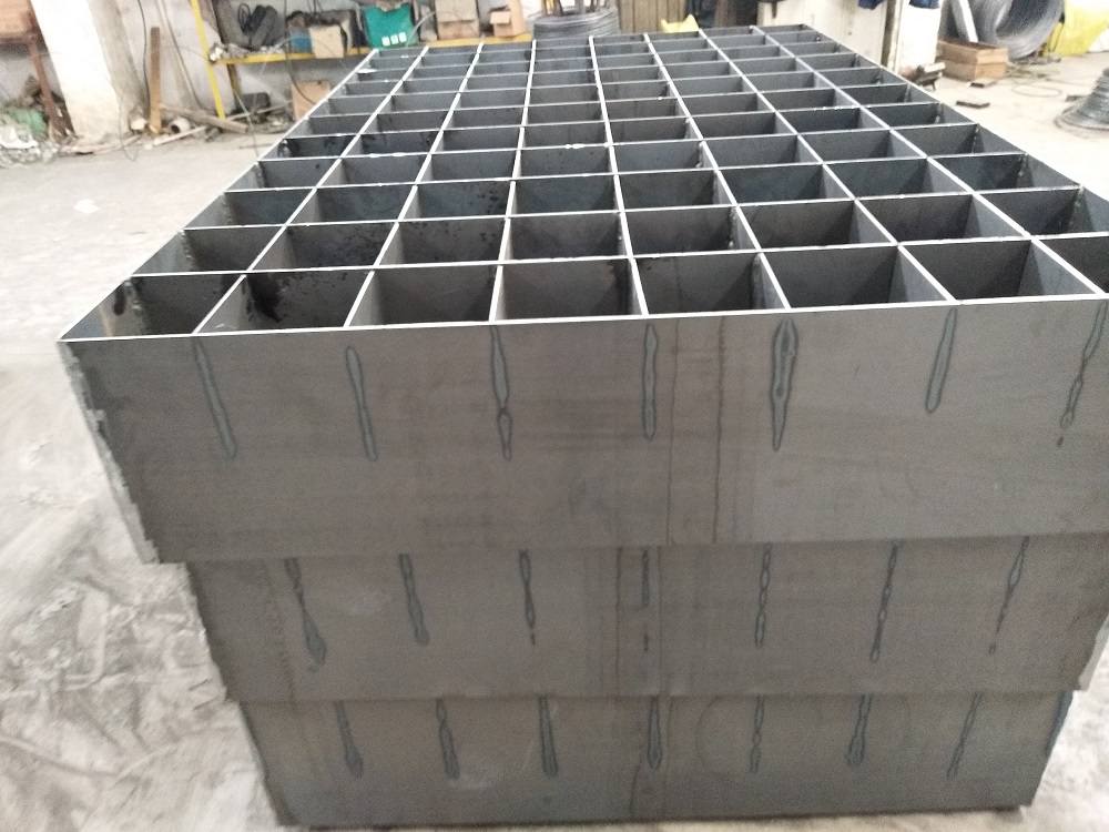 整流格栅采用高强度Q345B材质钢材,去抗挤压和冲击,耐磨。来物料填充 ,运载过程中需要需要刚强度承载能力和抗挤压能力。Q345钢材无疑是最好的选择。
